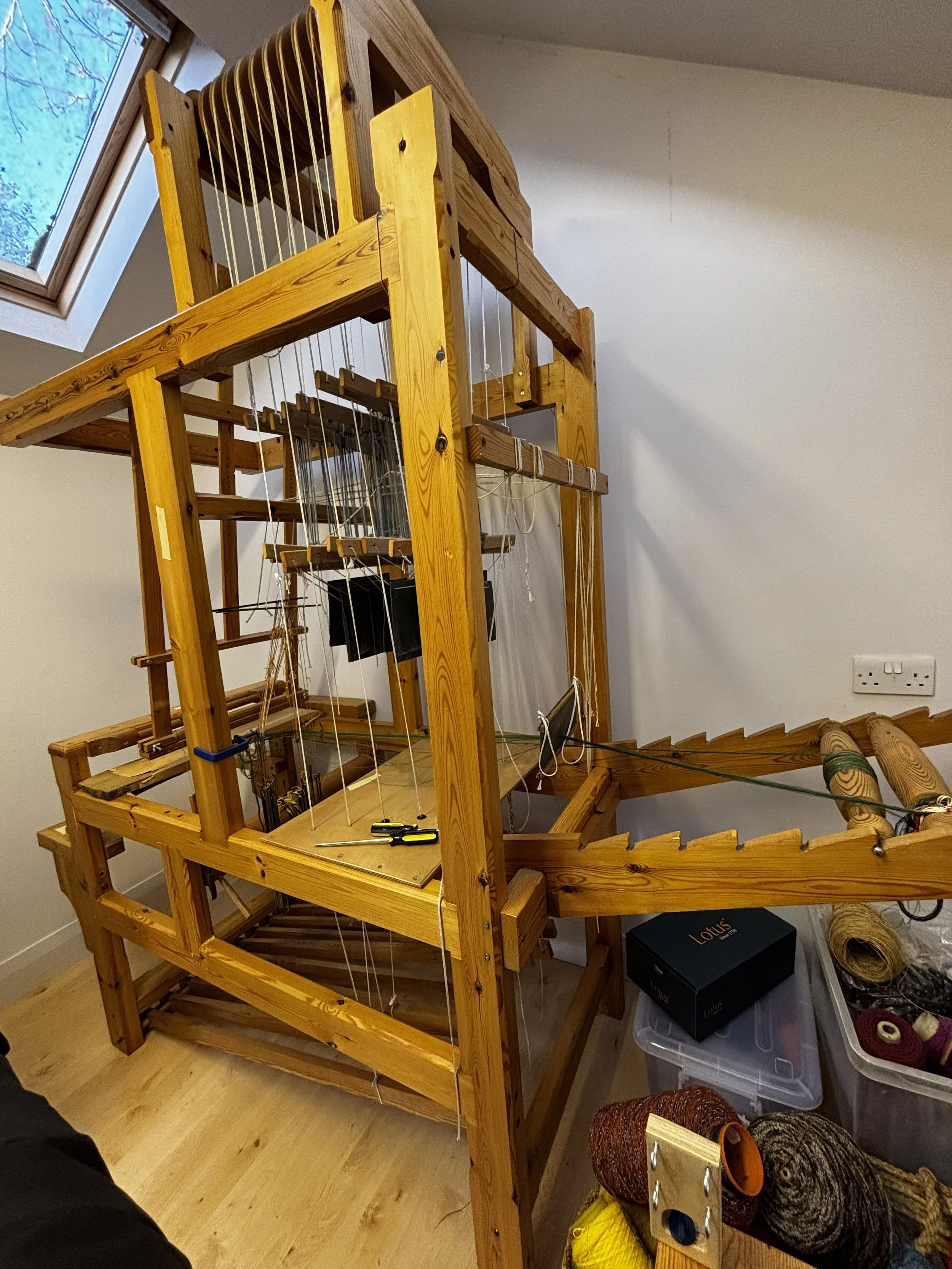 I have spent a few years wondering if I could convert a standard loom into a passementerie loom and very nearly did it, when the opportunity arose for me to buy this one.